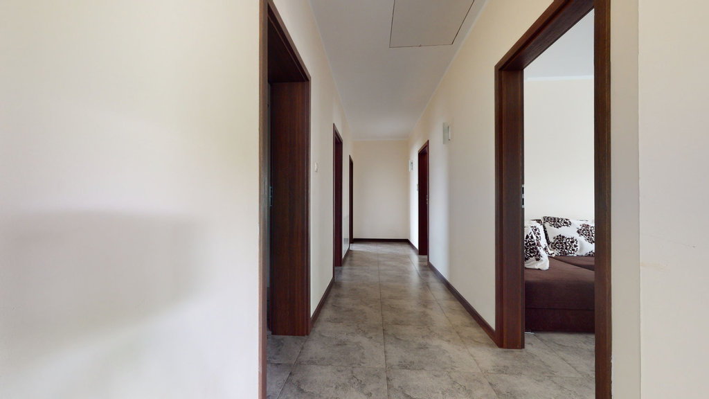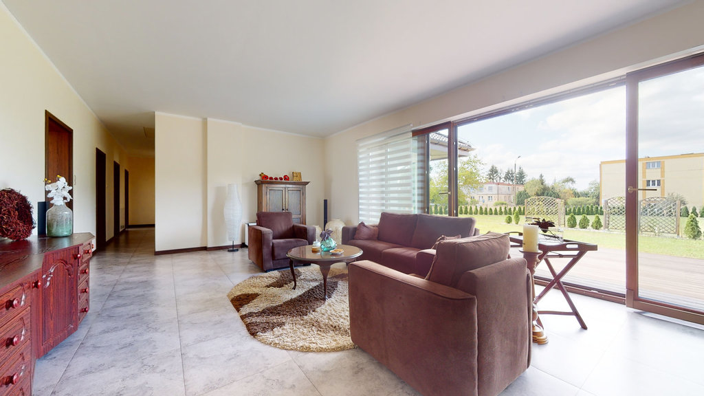 Budynek posiada wydzieloną strefę gościnną i prywatną, wewnętrzne przejście do drugiej części domu, wyjście na taras z czterech pokoi. Nieruchomość składa się z 8 pokoi, 2 kuchni, 3 łazienek, 2 garderób, pomieszczeń gospodarczych.