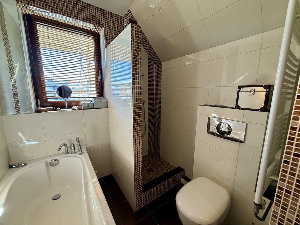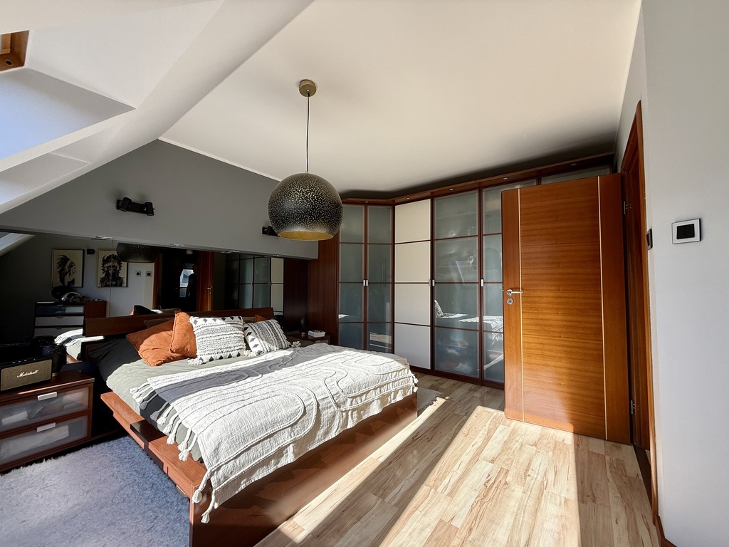 Na drugi poziom prowadzą starannie wykonane schody z drewna bukowego.