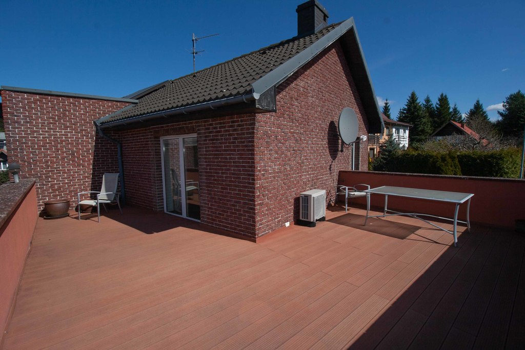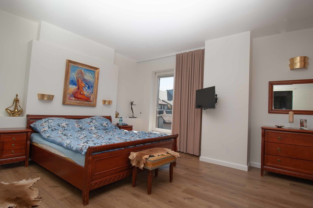 • Trzy sypialnie z garderobami (27,77 m², 15,04 m², 11,97 m²), z czego największa z wyjściem na imponujący taras (42 m²) z widokiem na panoramę Osowa i las,