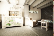 Dom składa się z 2 pokoi, kuchni, jadalni, łazienki, garażu na narzędzia.