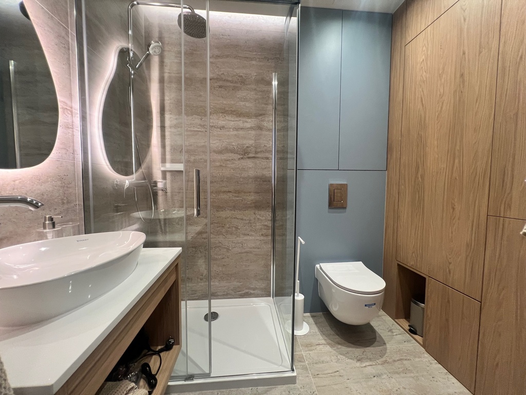 Ten apartament o pow. 44,40 m2 jest w pełni wykończony i wyposażony i trzeba do ceny doliczyć 180 tyś zł za wykończenie wraz z wyposażeniem.