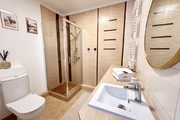 • Duża łazienka z kabiną prysznicową, eleganckim blatem oraz miejscem na pralkę i suszarkę