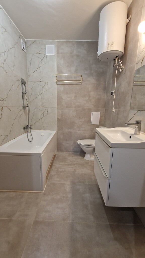 Ogrzewanie i ciepła woda z nowego, oszczędnego pieca elektrycznego.