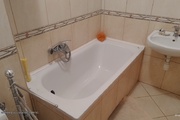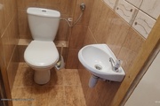 Osobna kuchnia – 8 m2, łazienka z wanną, umywalką i zainstalowanym piecem I biegowym na ciepłą wodę – 3,5 m2 , osobne wc – 1 m2. W tych pomieszczeniach na podłodze również terakota, w łazience i wc kafelki na ścianach.