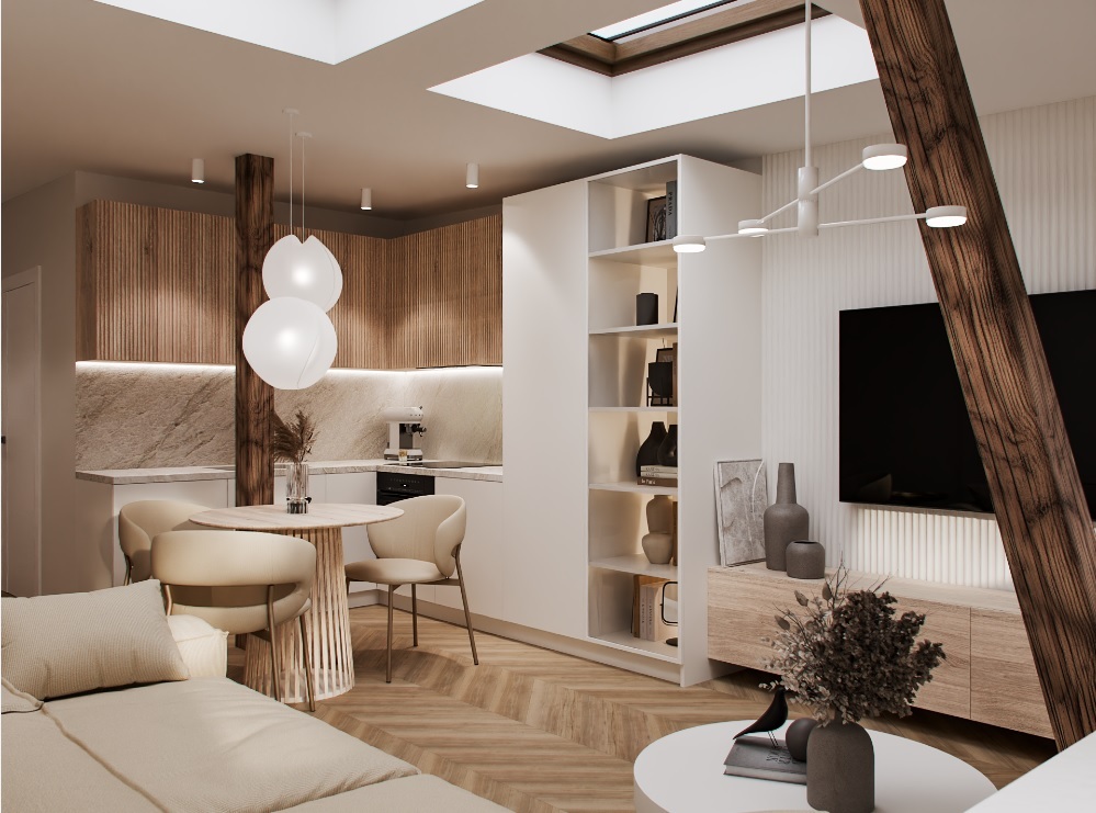 – pokój dzienny połączony z aneksem kuchennym 20,00 m2.