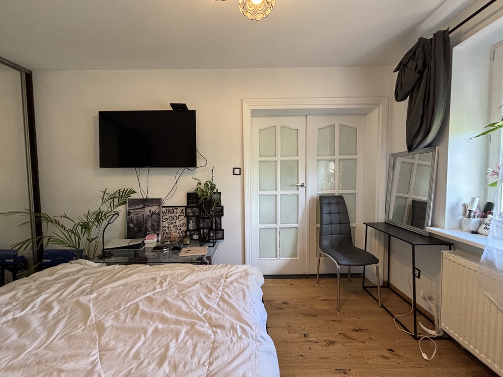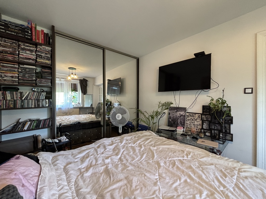 W sypialniach na podłodze panele, na ścianach gładź pomalowana. W obu sypialniach na wyposażeniu szafy w zabudowie stałej.