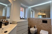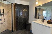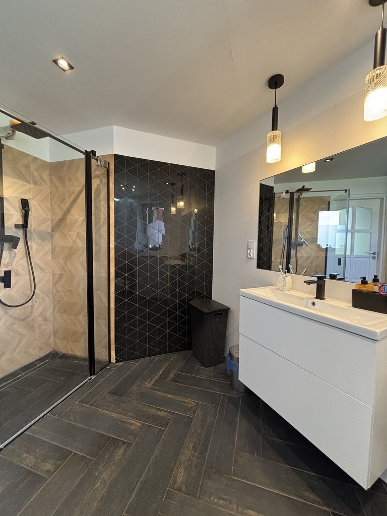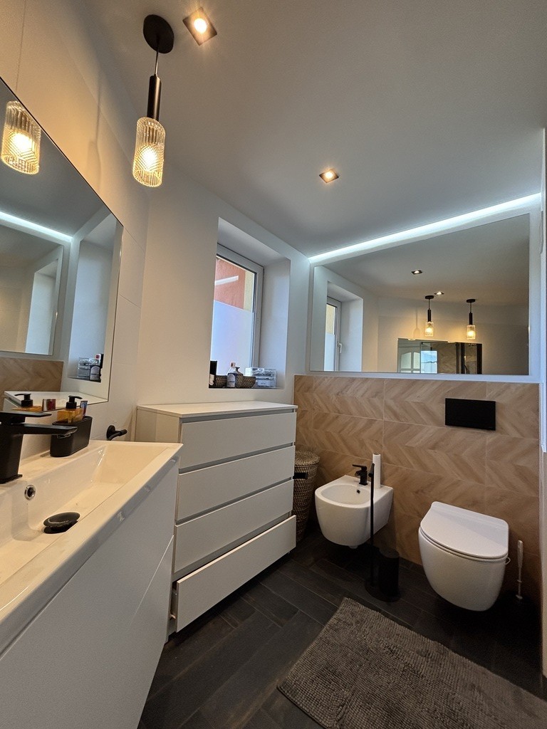 Łazienka połączona z toaletą. W łazience na wyposażeniu prysznic, umywalka, okno, bidet. Wykończona glazurą i terakotą. Łazienka przeszła remont w 2023r.