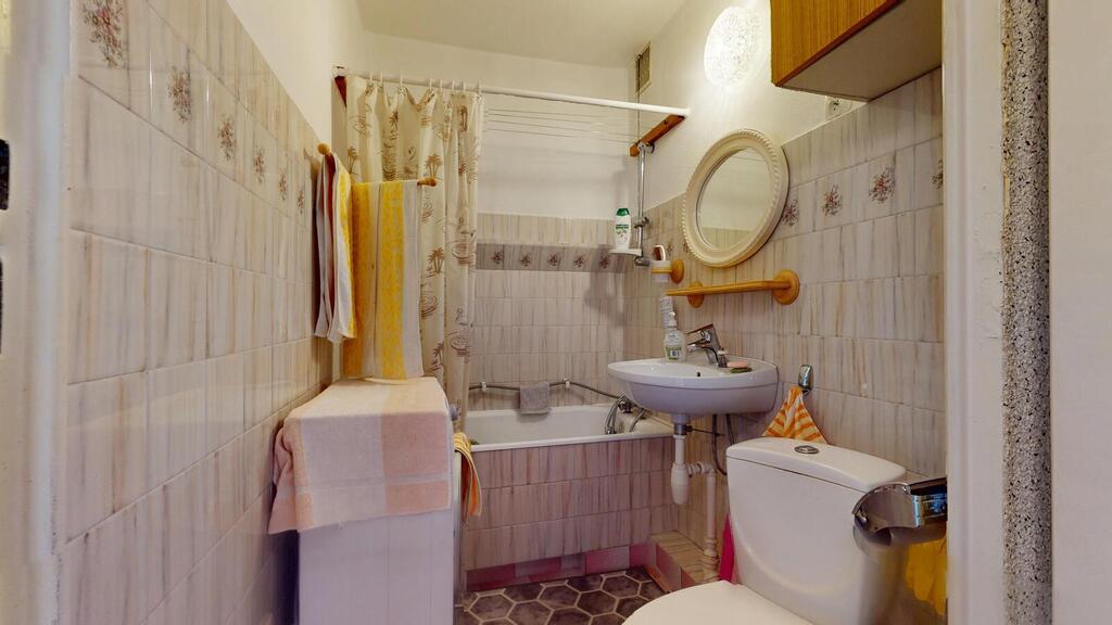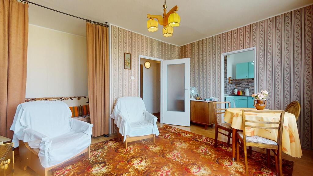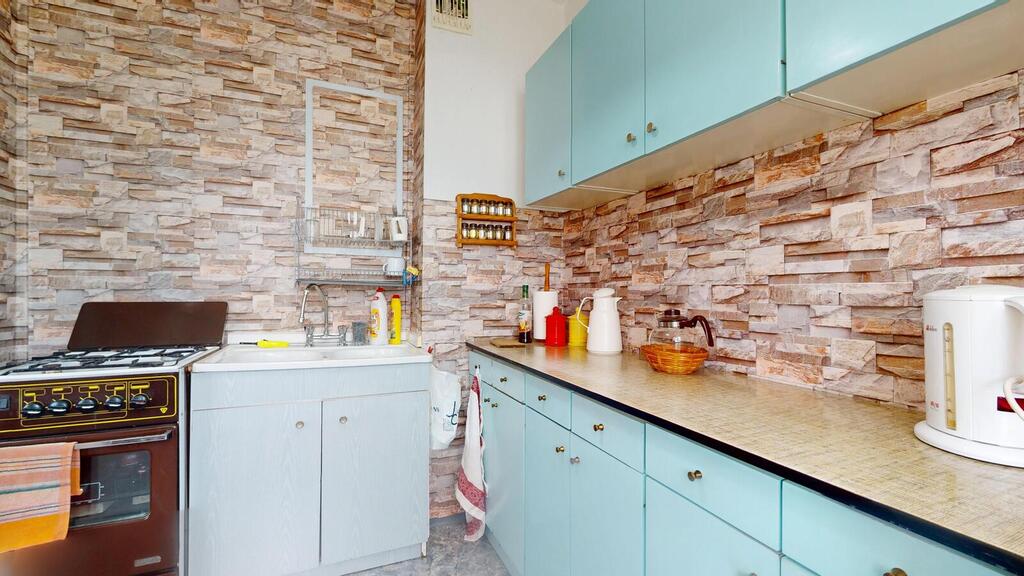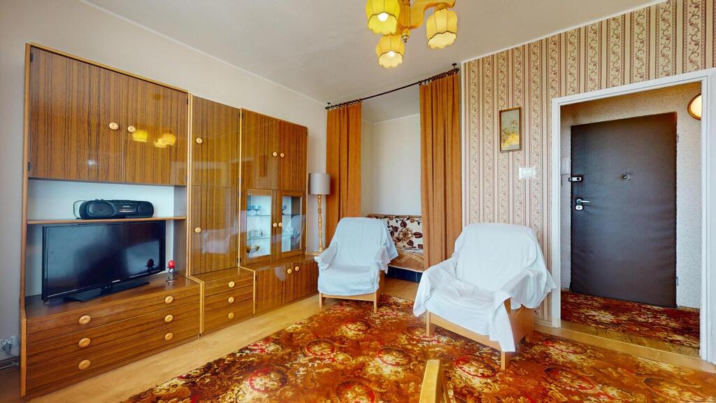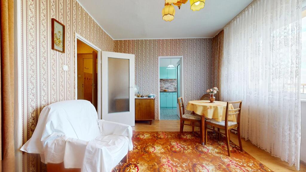 Kuchnia widna z meblami i sprzętem agd, pozostająca w cenie mieszkania. Łazienka razem z wc w glazurze i terakocie starego typu.