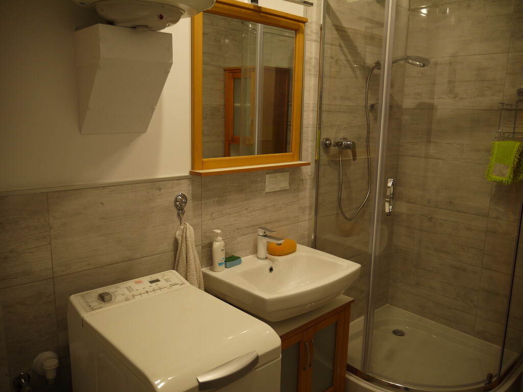 Poziom pierwszy stanowi piwnica 65 m2- 4 pomieszczenia , w tym pralnia z piecem gazowym ogrzewającym mieszkania na wyższych poziomach. Ciepła woda z bojlerów elektrycznych – w każdym mieszkaniu zainstalowany zasobnik na wodę 80 litrowy. Budynek podłączony do kanalizacji miejskiej- zainstalowana przepompownia przy budynku .