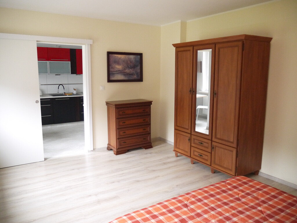 Mieszkania na parterze , piętrze i poddaszu – 2 pokojowe, z kuchnią i łazienką /66 m2, 70 m2 i 48 m2 /. Do każdego wejście z klatki schodowej . Lokale mieszkalne z księga wieczystą . Mieszkania po remoncie, okna PCV, nowe instalacje elektryczne, co i wod-kan. Wyremontowana klatka schodowa. Budynek ocieplony, nowa dachówka ceramiczna, podłogi w pokojach – panele, kuchnie zabudowane / w mieszkaniach kuchenki indukcyj/. Dwa mieszkania aktualnie wynajmowane , umowa na czas określony . Przy budynku miejsce na parking.