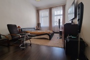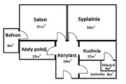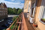 - Salon (21 m²) z dużym balkonem od strony południowo zachodniej – front kamienicy