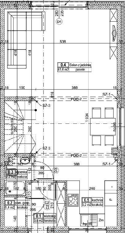 Każdy lokal mieszkalny składa się z dwóch poziomów (plus antresola) o powierzchni użytkowej 111,8m2.