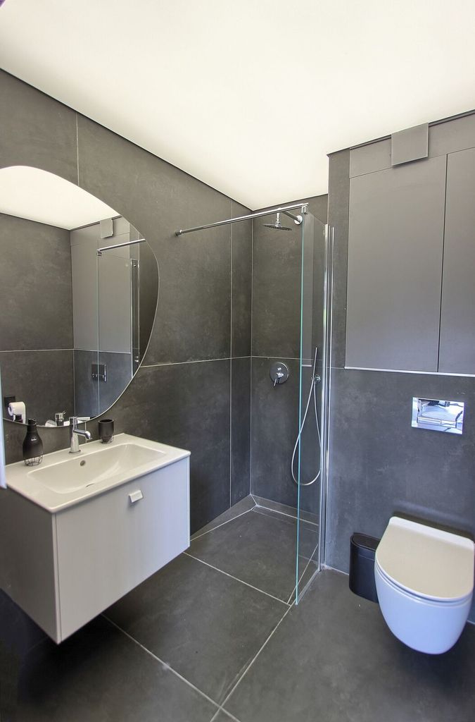 •Nowoczesna łazienka z wysokiej klasy wykończeniem