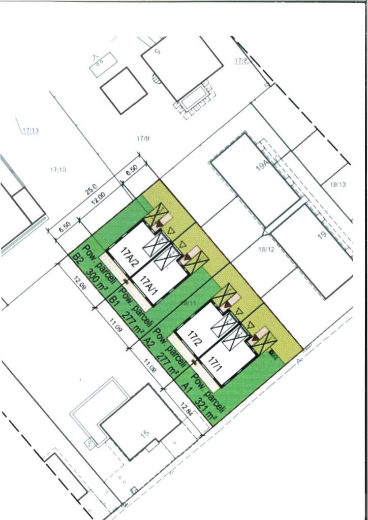 Każdy dom znajduje się na działce w zależności o powierzchni od 277mkw do 321mkw.
