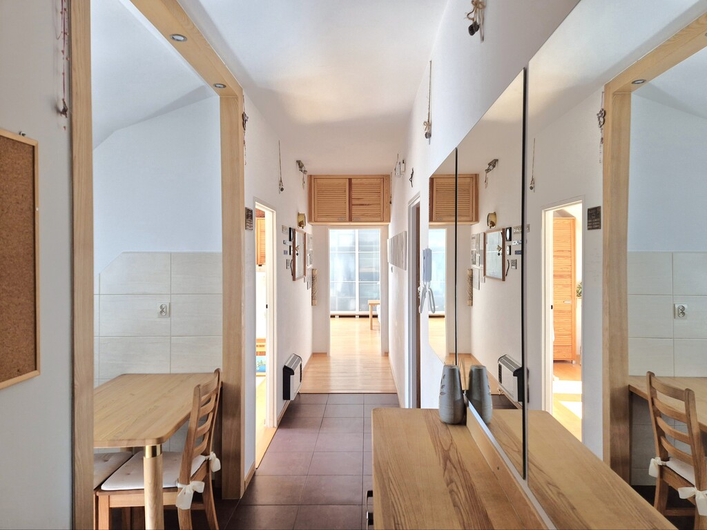 Mieszkanie jest doskonale doświetlone, a układ pomieszczeń zapewnia komfort codziennego życia. Wszystkie meble są solidne i zadbane – gotowe do użytku bez potrzeby dodatkowych inwestycji. Jeśli szukasz miejsca z duszą, gdzie drewno i światło tworzą harmonijną całość – to mieszkanie jest dla Ciebie.