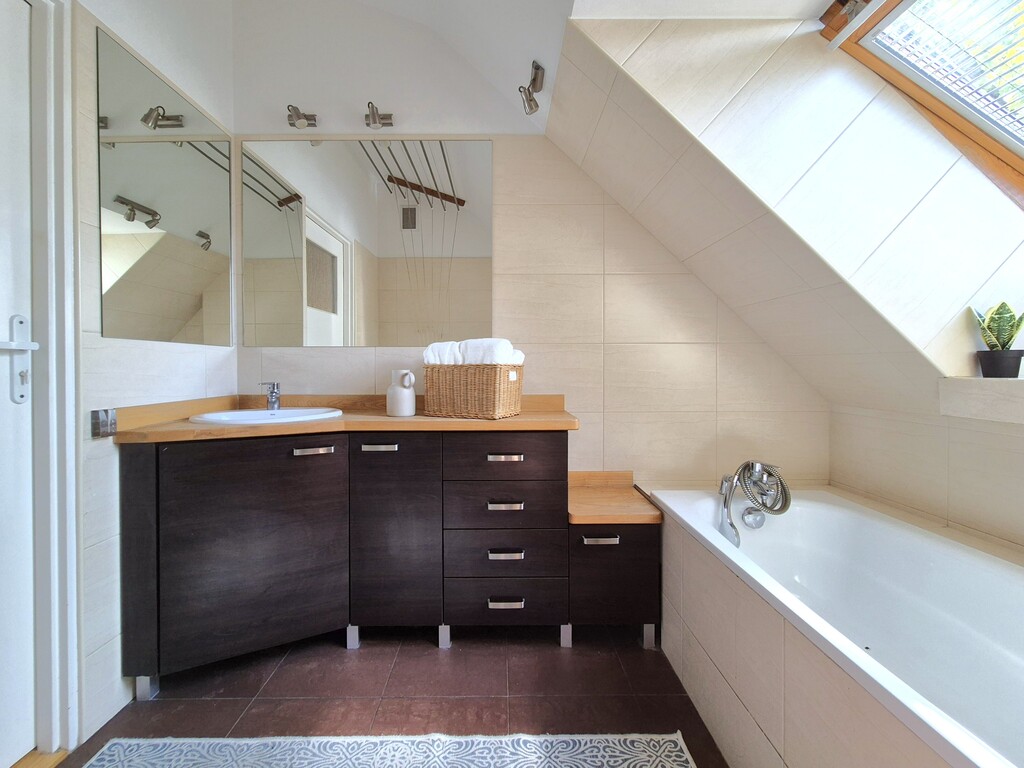 * Odsłonięte drewniane belki stropowe – tworzą niepowtarzalny klimat poddasza