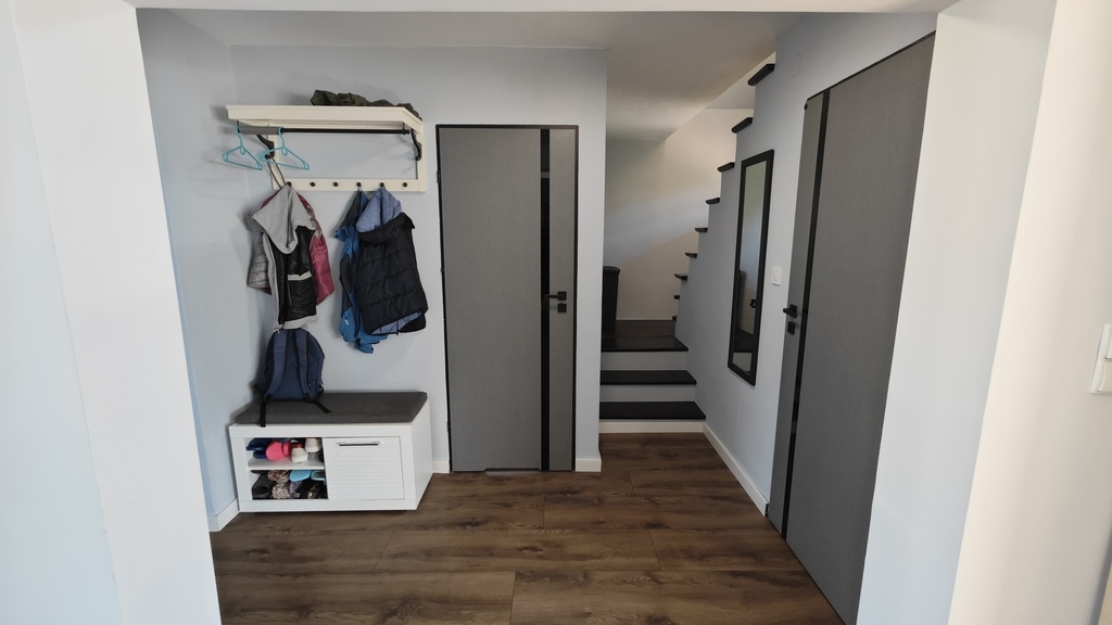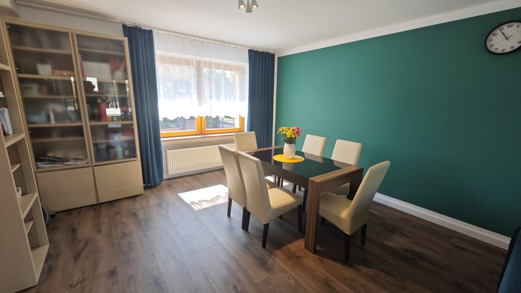 Nieruchomość w ciągu ostatnich dwóch lat przeszła bardzo wiele prac remontowych. Właściciele w większości pomieszczeń wygładzili i pomalowali ściany. Na parterze nowe panele w salonie, kuchni i przedpokoju. Nowe drzwi wewnętrzne w dolnej łazience i wiatrołapie plus całkowicie nowe drzwi zewnętrzne antywłamaniowe (wymienione na początku tego roku). Całkowicie nowa kuchnia (meble w zabudowie plus sprzęt AGD). Wszystkie okna w całym domu wymienione na nowe drewniane (wymiana okien zakończona pod koniec 2024 roku) plus wszędzie nowe parapety (pozostały jeszcze do pomalowania ściany przy samych świeżo wymienionych oknach i parapetach). W większości domu została wykonana nowa instalacja elektryczna. Dodatkowo wykonano ozdobne oświetlenie punktowe w salonie, kuchni, jednej z sypialni oraz w dolnej łazience.