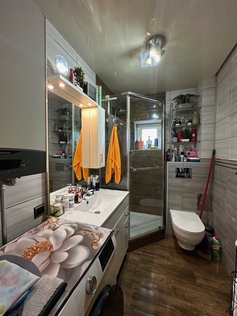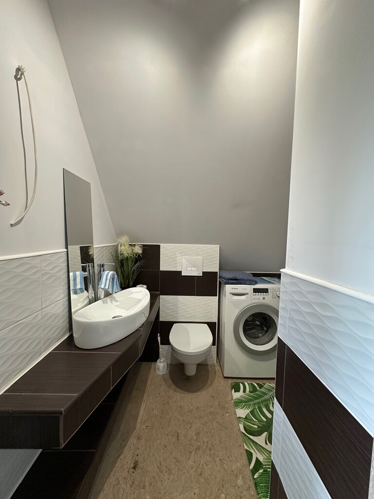 – część mieszkalna położona na 1 piętrze o powierzchni 48,64 m2 składająca się z 2 dużych pokoi, łazienki z kabiną prysznicową, oraz dużej widnej kuchni z częścią jadalną