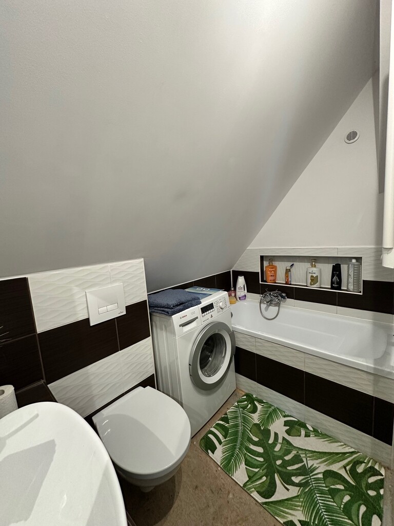 – część niemieszkalna – poddasze położone na 2 piętrze o powierzchni użytkowej 28,03 m2 do własnej aranżacji (powierzchni całkowita około 48 m2). Właściciel prowadził prace adaptacyjne w celu dostosowania do funkcji mieszkalnej, została zrobiona łazienka z wanną z elektrycznym podgrzewaczem wody, częściowo ocieplony sufit , wydzielone miejsce na aneks kuchenny. Powierzchnia doświetlona 2 oknami w ścianie szczytowej oraz 1 oknem połaciowym.