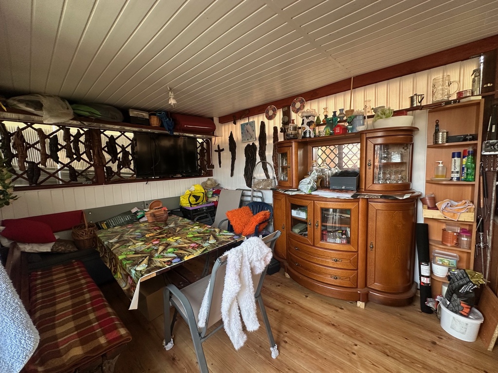 – ogródek o powierzchni ok. 50m2 z wiatą tworzącą salon ogrodowy oraz garażem blaszanym, ocieplonym i obitym płytami OSB.