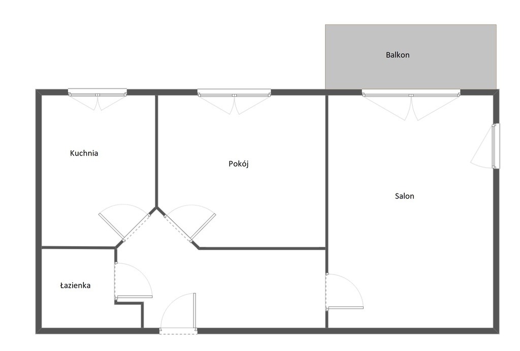 -jasny, ustawny salon z wyjściem na balkon,