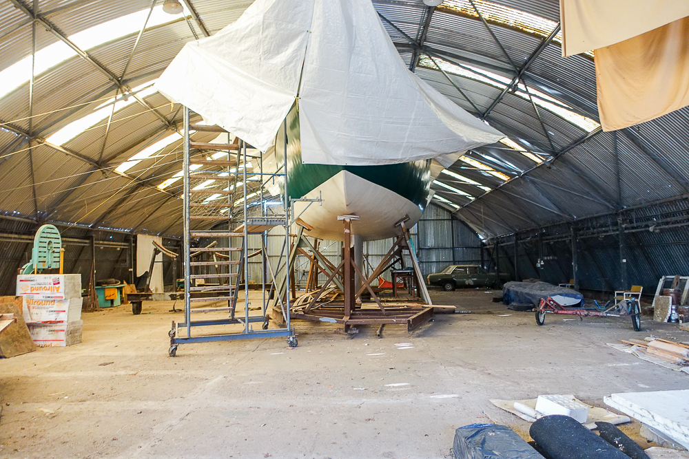 Na sprzedaż zorganizowane przedsiębiorstwo posiadające działki częściowo własnościowe, częściowo w użytkowaniu wieczystym. Na jednej z działek hala – hangar o konstrukcji stalowej obudowana blachą cynkową, trapezową, niepodpiwniczona, posadzka cementowa, okna. Instalacja elektroenergetyczna, powierzchnia użytkowa 570 m2, brama wjazdowa o szerokości 9,25 m i wysokości 5,4 m. Wysokość hali w najwyższym punkcie 6,9 m. Może być wykorzystana pod budowę jachtów.