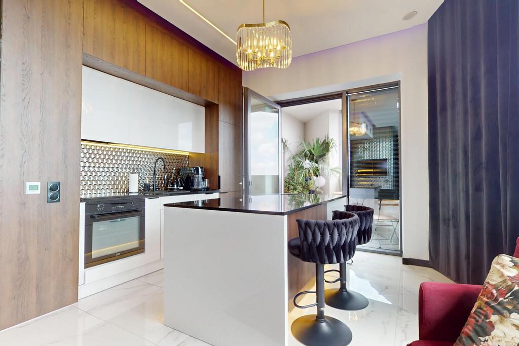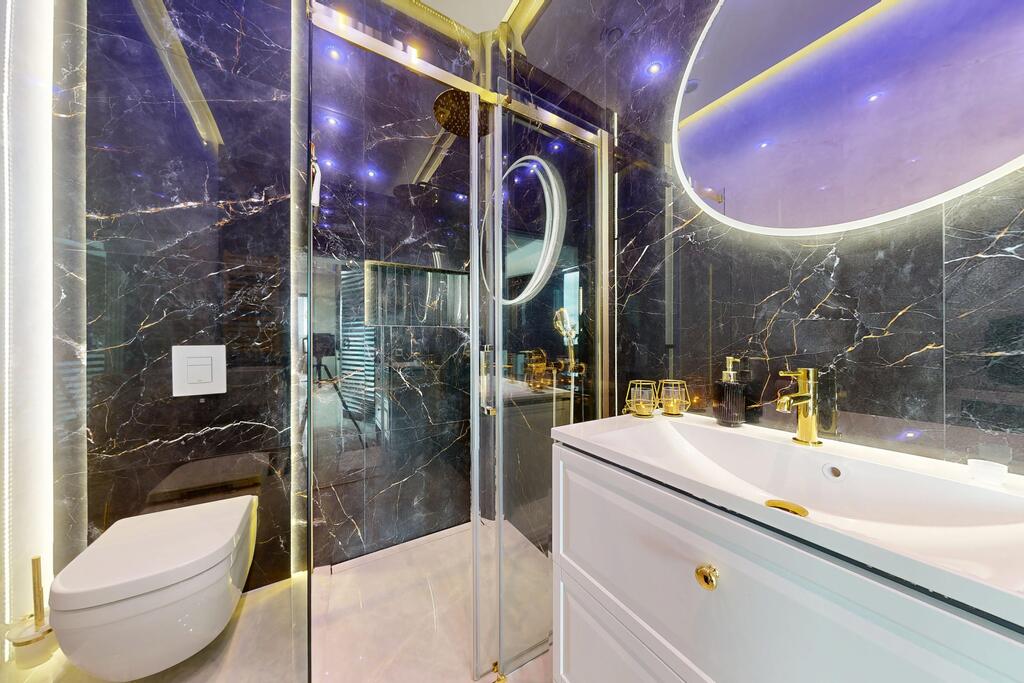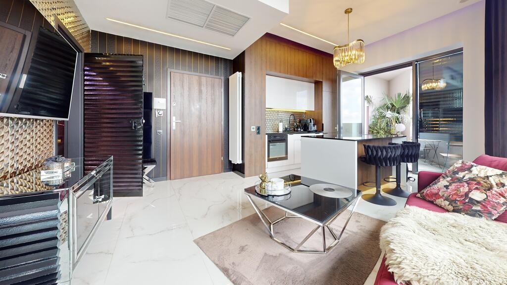 – Nagłośnienie w całym apartamencie – wysokiej klasy system audio z zabudowanymi głośnikami w suficie