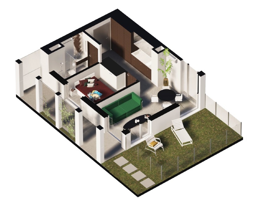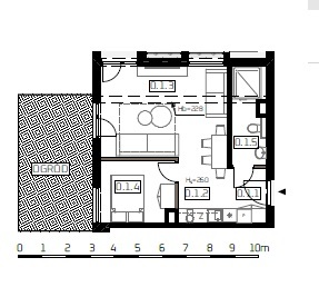 Prezentowany apartament ma powierzchnię 42,08 m2, ogród 17,67 m2, taras 10,73 m2