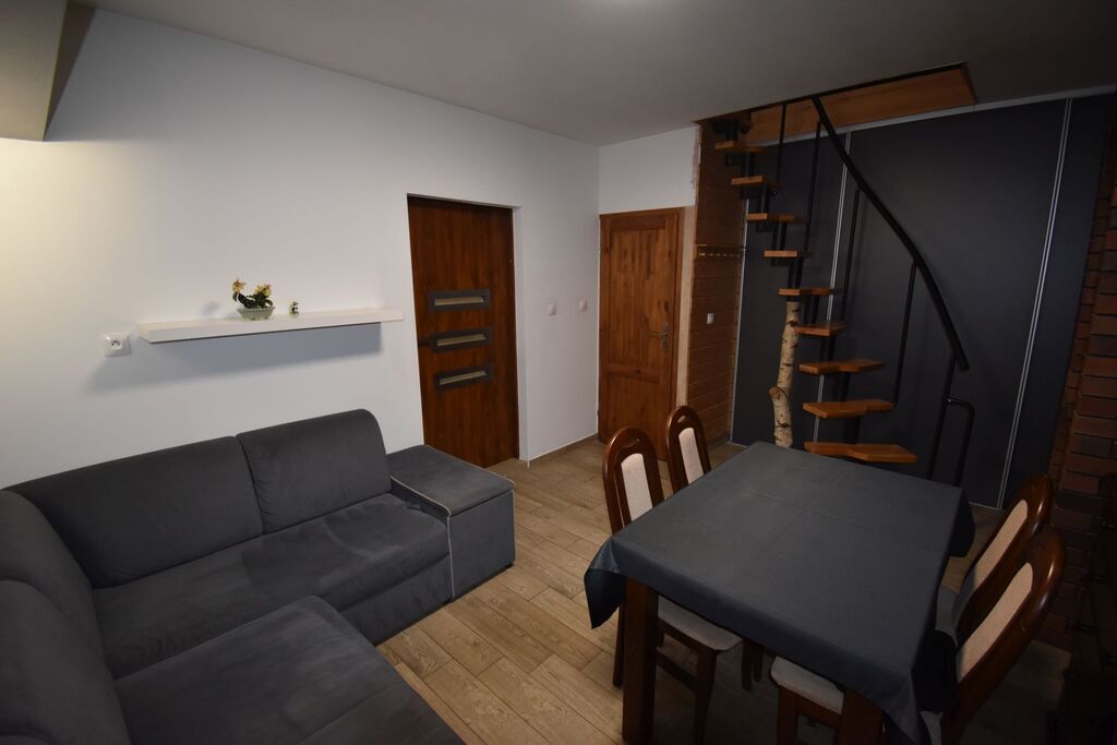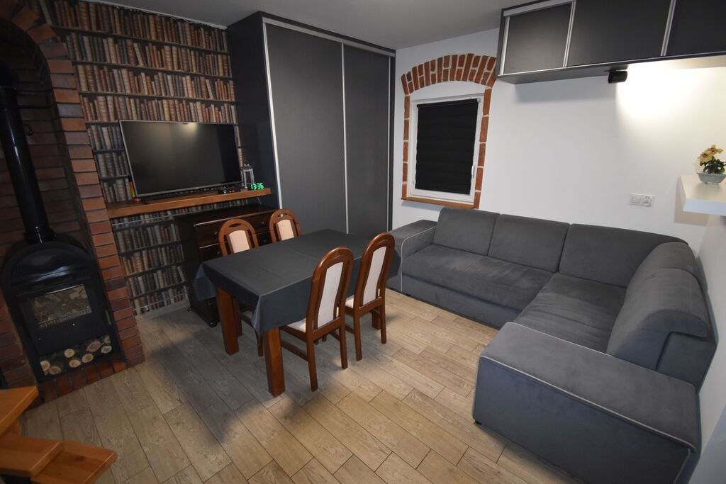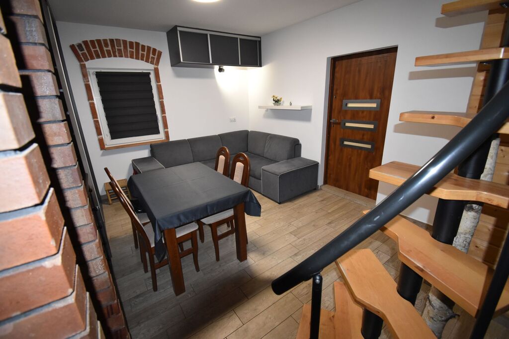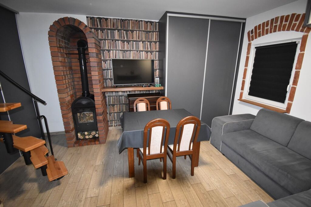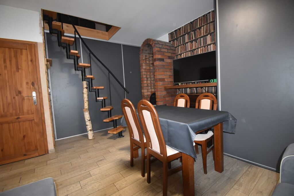 kominkiem; na piętrze sypialnia).