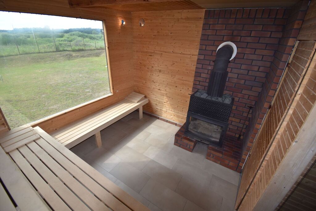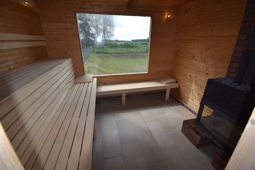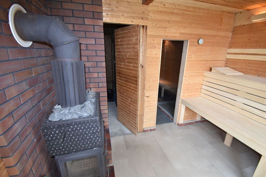 Nad piwnicą – sauna, prysznic, pomieszczenie wypoczynkowe, przedsionek-około 30m2.