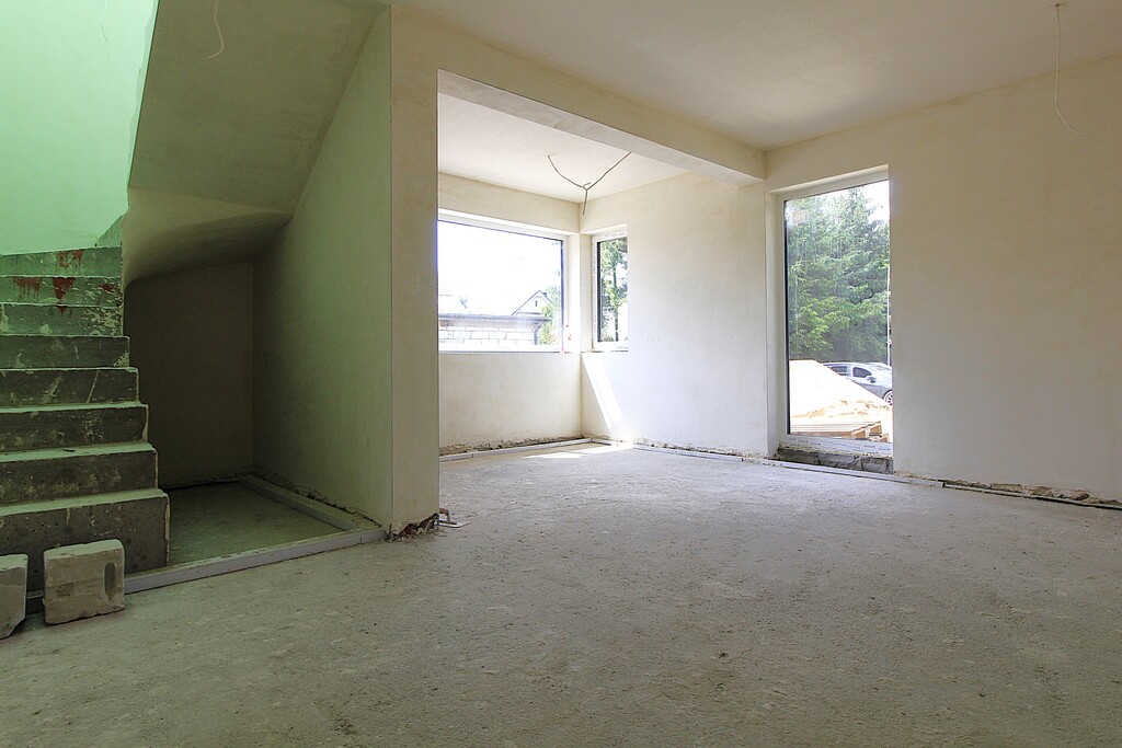 Stan deweloperski – do własnej aranżacji Dom jest ocieplony, pokryty dachówką ceramiczną, wyposażony w nowoczesne okna PCV trzyszybowe.