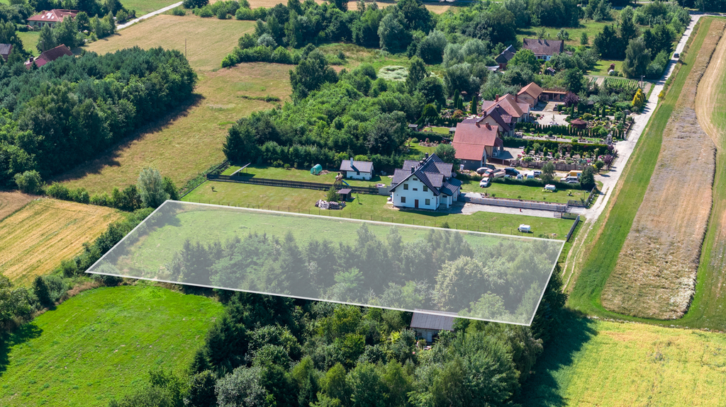Do sprzedaży ładnie położona działka, w urokliwym miejscu, pośród pól i lasów. W okolicy tylko kilka budynków mieszkalnych.