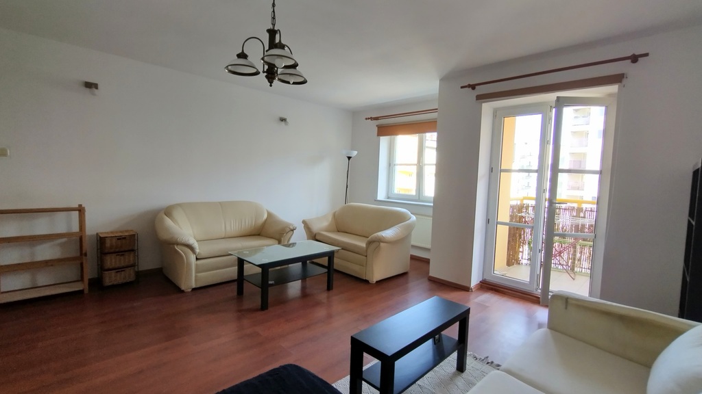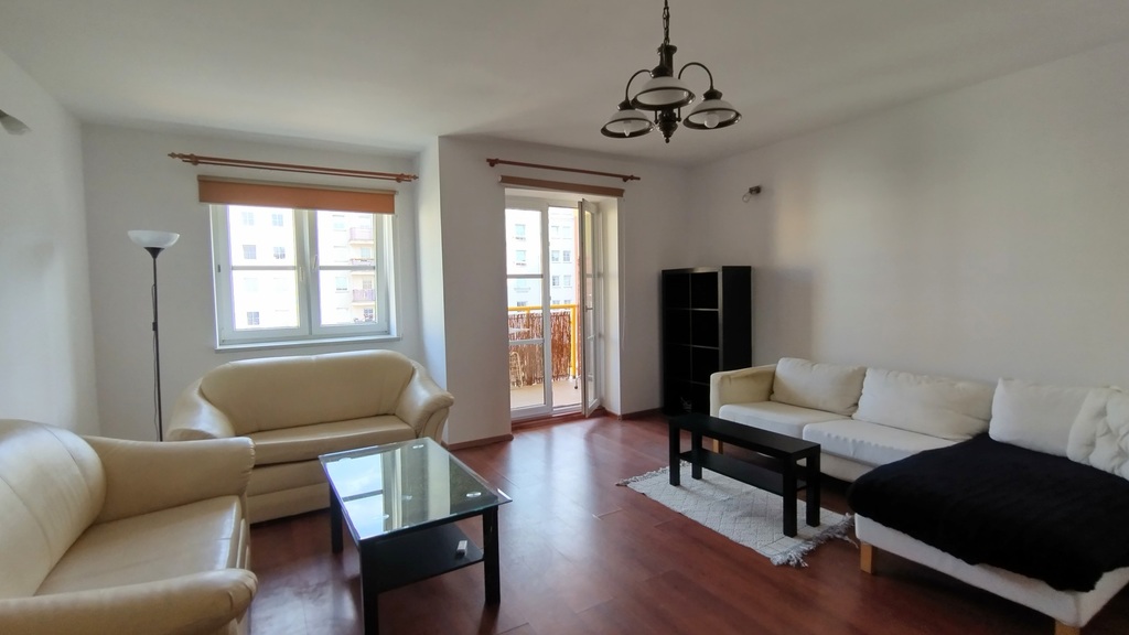 Salon przestronny z wyjściem na balkon od strony podwórka. Do salonu prowadzą przesuwne drzwi. Pozostałe dwa pokoje osobne, jeden z oknami od strony podwórka, drugi od ulicy. Kuchnia umeblowana i wyposażona (lodówko-zamrażarka, kuchenka, okap).