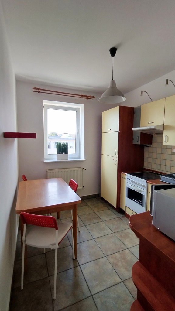 Łazienka – wanna z prysznicem, wc, pralka, nowy piec gazowy dwuobiegowy. Ponadto w mieszkaniu znajduje się dodatkowa toaleta. Mieszkanie znajduje się na granicy strefy płatnego parkowania, w bliskiej odległości jest parking wolny od opłat, a więc można parkować poza strefą.