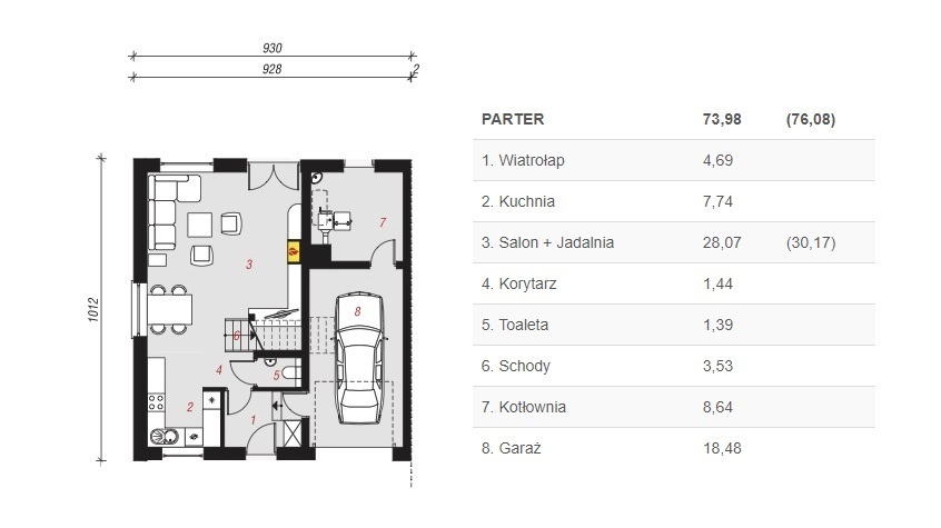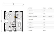 Parter: pow. użytkowa 73,98 m2: po podłodze 76,8 m2:
