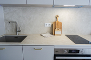 W przedpokoju szafa. W pokoju z aneksem kuchennym zabudowa kuchenna wraz z urządzeniami (zmywarka 45 cm, płyta indukcyjna, piekarnik elektryczny, zlewozmywak), wypoczynek, w łazience kabina prysznicowa, pralka, umywalka, 2 umeblowane sypialnie z szerokimi łóżkami i szafami. Z pokoju i sypialni wyjście na taras od strony południowej i zachodniej.