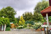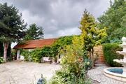 Dom otoczony jest przepięknym ogrodem, liczne nasadzenia, krzewy, oczko wodne, w pełni zautomatyzowany system nawadniania. Na terenie posesji znajduje się również domek gościnny (salon z aneksem kuchennym plus dwie sypialnie, łazienka z wc), sauna i jacuzzi. Standard pomieszczeń – foto.