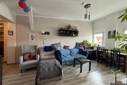 W pokojach na podłodze panele, ściany wygładzone i pomalowane.