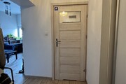 W korytarzu na podłodze gres, szafa w zabudowie.