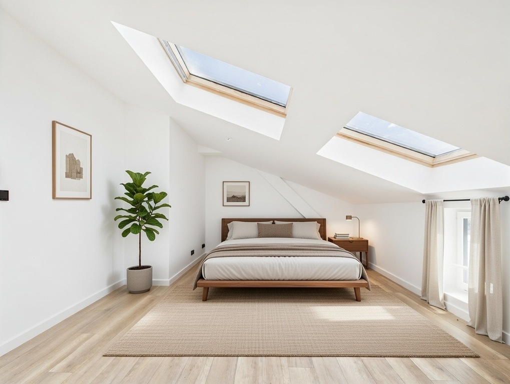 • duże okna dachowe – świetne doświetlenie i przyjemny klimat wnętrza