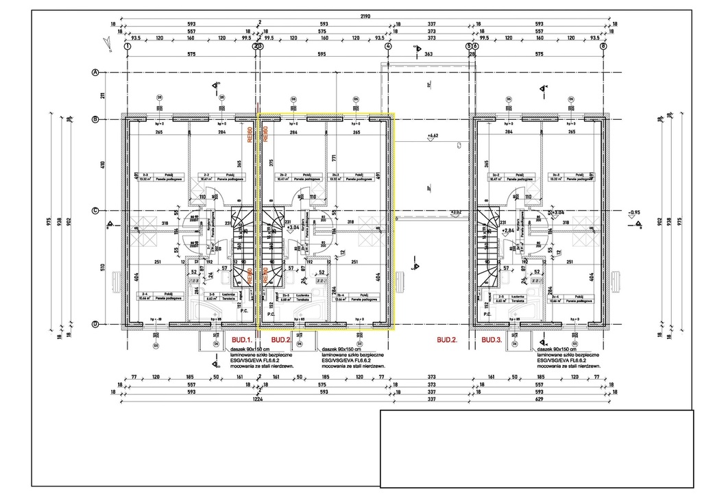 Budynek o powierzchni 93,2 m2 z dużym salonem z aneksem kuchennym, miejscem na jadalnię, 3 sypialniami i 2 łazienkami, a także strychem jako pomieszczeniem magazynowym (podłoga z płyt OSB, właz z drabinką). Do segmentu przynależy garaż o powierzchni 20,3 m2 oraz 1 miejsce postojowe przed garażem i ogródek.
