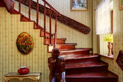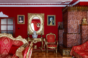 Wnętrza urzekają eleganckim stylem wiktoriańskim – mahoniowe meble, złocone lustra, stylowe tapety oraz drewniane parkiety w geometryczne wzory tworzą unikalny klimat.