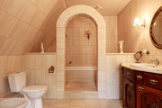 Piętro – pięć sypialni, dwie garderoby, pokój kąpielowy, łazienka oraz hol.