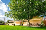 – Zadbany ogród z licznymi nasadzeniami drzew i krzewów.