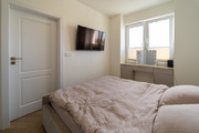 Już od progu wita Cię jasny, przestronny salon z aneksem kuchennym, w którym naturalne światło podkreśla harmonię barw i starannie dobrane materiały.