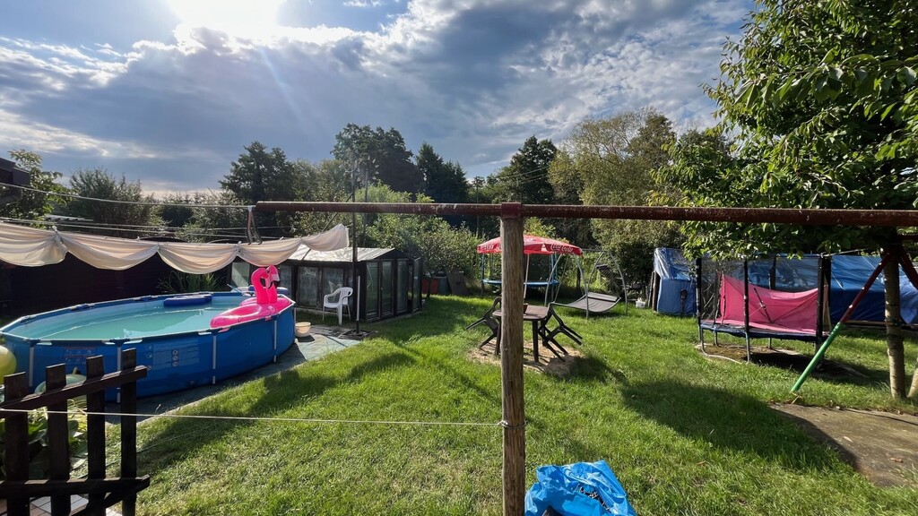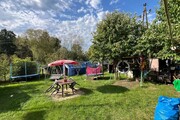 Na działce na której posadowiony jest dom liczne nasadzenia: krzewy, drzewa owocowe.