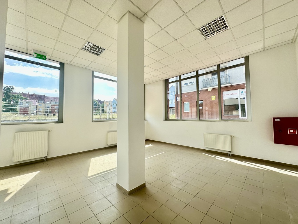 - Przestronna sala typu open space z dużymi witrynami – doskonała ekspozycja i naturalne doświetlenie
