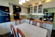 Duża kuchnia z wydzieloną częścią „jadalnianą”, liczne szafki, wygodne oświetlenie LED różnych stref daje poczucie wygody i komfort użytkowania.