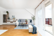 – Przestronny salon z aneksem kuchennym i wyjściem na balkon