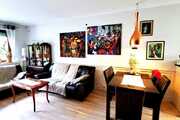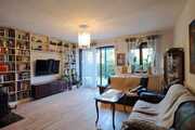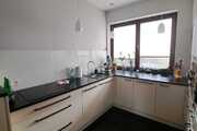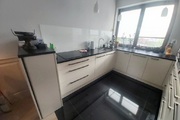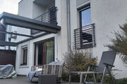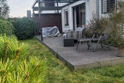 Z salonu wyjście na taras, a dalej do ogrodu. Kuchnia zabudowana jasnymi meblami na wymiar oraz sprzętem AGD w zabudowie .